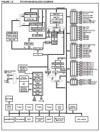 PIC18F458-I/PT features: (1)High current sink/source 25 mA/25 mA; (2)Three external interrupt pins; (3)Timer0 module: 8-bit/16-bit timer/counter with 8-bit programmable prescaler; (4)Timer1 module: 16-bit timer/counter; (5)Timer2 module: 8-bit timer/counter with 8-bit period register (time base for PWM); (6)Timer3 module: 16-bit timer/counter; (7)Secondary oscillator clock option – Timer1/Timer3; (8)Capture/Compare/PWM (CCP) modules; ; (9)Complies with ISO CAN Conformance Test; (10)Message bit rates up to 1 Mbps; (11)Power-on Reset (POR), Power-up Timer (PWRT) and Oscillator Start-up Timer (OST); (12)Watchdog Timer (WDT) with its own on-chip RC oscillator; (13)Programmable code protection; (14)Power-saving Sleep mode; (15)Selectable oscillator options, including: 4x Phase Lock Loop (PLL) of primary oscillator; Secondary Oscillator (32 kHz) clock input; (16)In-Circuit Serial ProgrammingTM (ICSPTM) via two pins.